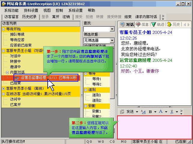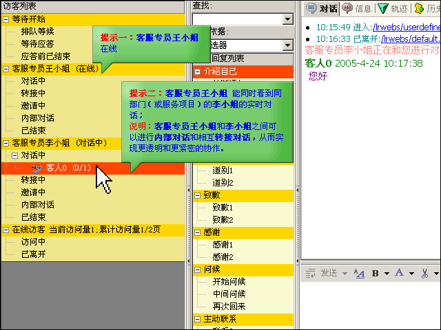 - 友好对象也可以帮助经理监测各个接待人员的实时对话,如(图2)。