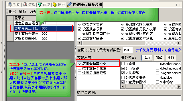 - 问:假如我是客服专员王小姐,我如何才能看到客服专员李小姐实时对话?