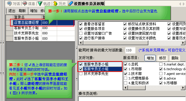 - 问:我是公司经理,我如何设置才能同时监测多个接待人员的实时对话?