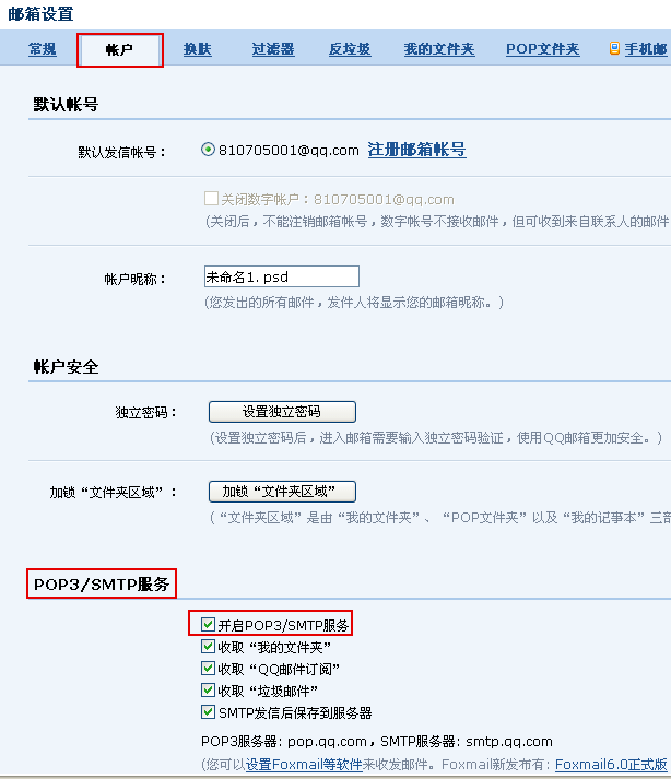 开启POP3/SMTP服务